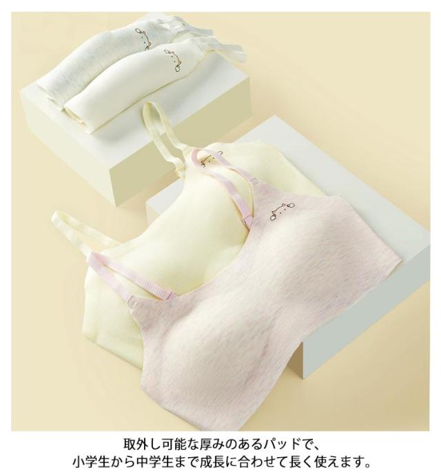| アクティブガールにも、体育部活にもおすすめのインナーです。 取外し可能な厚みのあるパッドで、小学生から中学生まで成長に合わせて長く使えます。 ノンワイヤーなので、締め付け感がさせられないので、寝る時着けてもOK。 軽くて通気性も抜群、汗をかいても張り付くような不快感はありません。 激しい運動でもズレにくく、ぴったりと身体の動きにフィットします。 | |