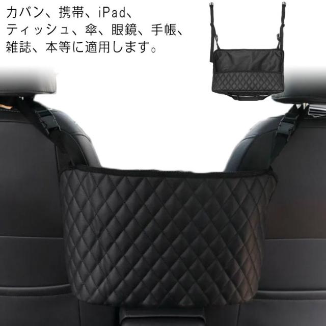 車用収納ポケット 車載 収納ポケット PUレザー ブラック 黒 シートバックポケット 後部座席収納 車内 収納 小物入れ シートバッグ 車内収納袋 大容量 省スペース 座席間収納バッグ 折り畳み式 車用小物入れ 簡単に取り付け