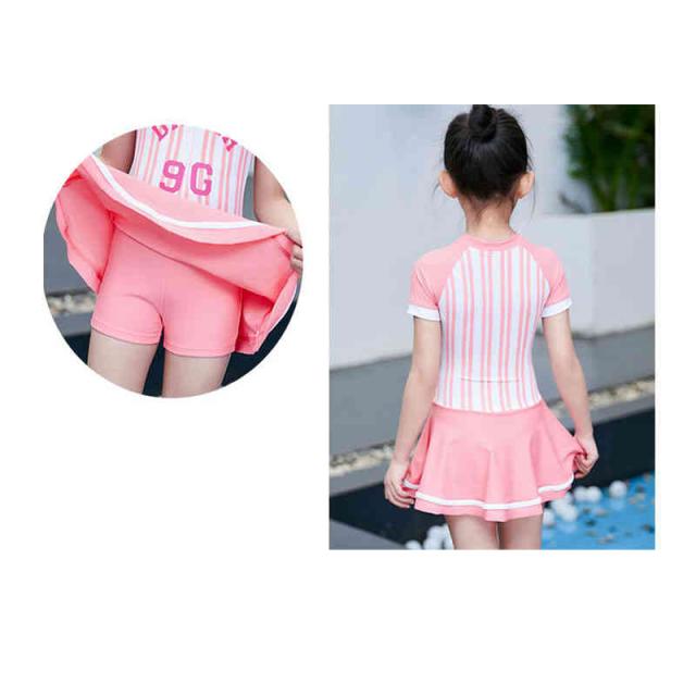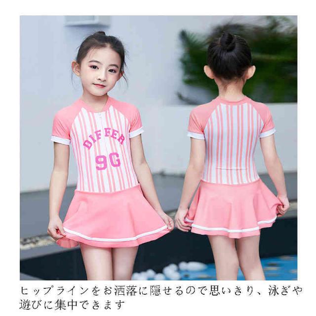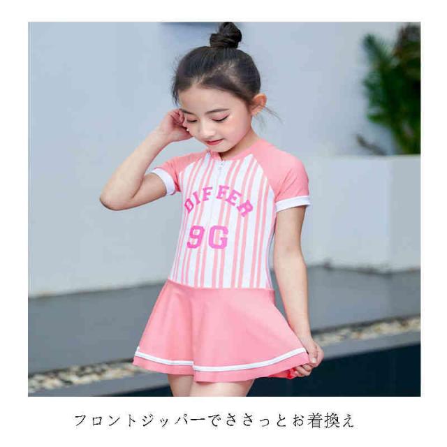 キッズ 水着 女の子 セパレート 2点セット ワンピース ショートパンツ ストライプ 子供 可愛い ファッショ