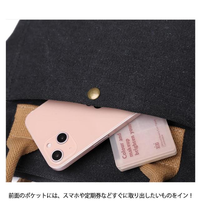 | でシンプルなルックスが大人カジュアルなトートバッグ。 耐摩耗性に優れたキャンバス素材を使用し、耐久性に優れて、長く使えます。 内部にポケットが付きなので、荷物を綺麗に整理整頓して入れられます。 前面のポケットには、スマホや定期券などすぐに取り出したいものをイン! ショルダー部分は取り外し可能、2WAYタイプでショルダーバッグとしてもOKです。 | |