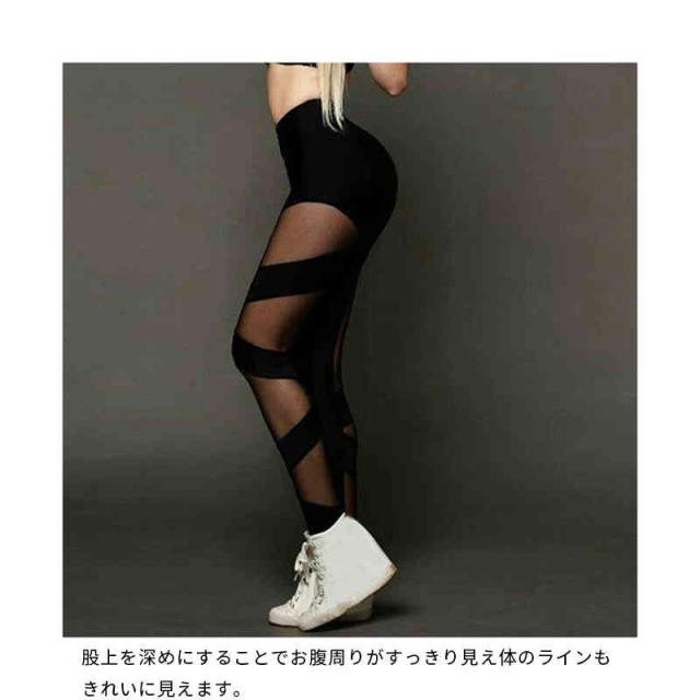| サイドは透け感のあるクロスオーバーデザイン、フィット感と快適さを両立。 腹部を締め付けない伸縮性あるハイウエスト。 股上を深めにすることでお腹周りがすっきり見え体のラインもきれいに見えます。 腰から足までぴったりフィットし、美シルエットを演出! 伸縮性のある素材で、動きを妨げず とても着やすい、様々な体型にも対応可能です。 | |