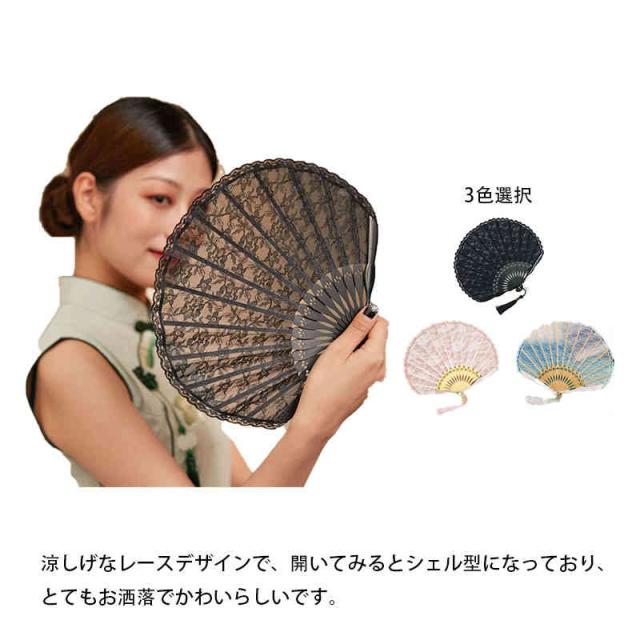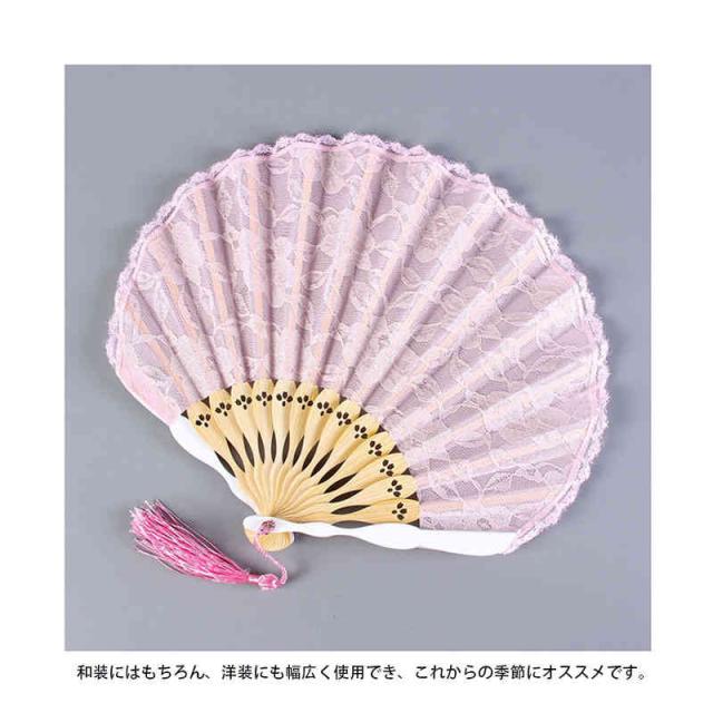 扇子 ふわり扇子 レース 竹 シェル型 婦人 和装小物 女性用 おしゃれ レース 軽い お洒落 おしゃれ せんす 夏