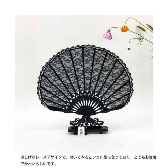 | 涼しげなレースデザインで、開いてみるとシェル型になっており、とてもお洒落でかわいらしいです。 女性でも持ちやすいコンパクトなサイズ感で、バッグに入れてもかさばりません。 和装にはもちろん、洋装にも幅広く使用でき、これからの季節にオススメです。 | |