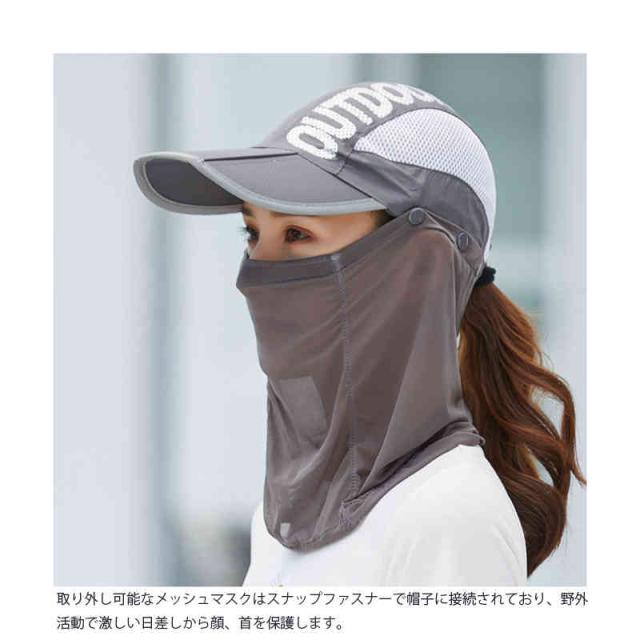 キャップ レディース 4way 日焼け防止 帽子 マスク サンバイザー UV 折りたたみ UVカット帽子 自転車 日焼け 対策 紫外線対策用ハット フェイスカバー付 つば広 日焼け 軽い 遮光 ハット おしゃれ 熱中症 自転車 日焼け 対策 帽子 つば ミセス 農作業 釣り 母の日