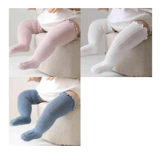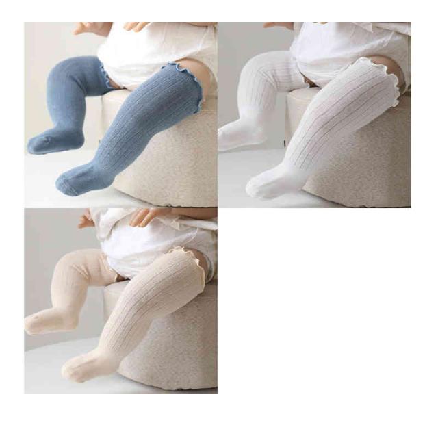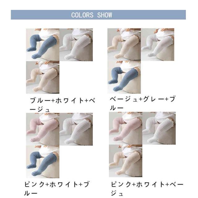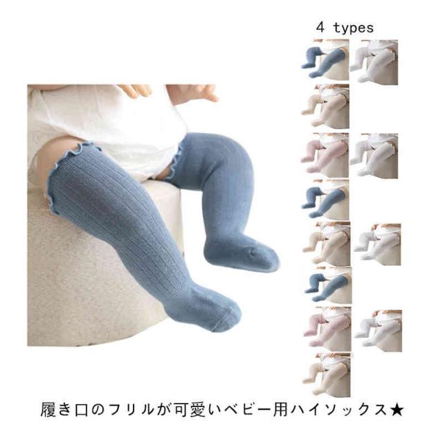 靴下 ベビー 3足セット ハイソックス オーバーニー フリル 赤ちゃん 新生児 子供用靴下 ベビー用品 男の子 女の子 ベビー用品 可愛い 無地 春 夏 出産祝い
