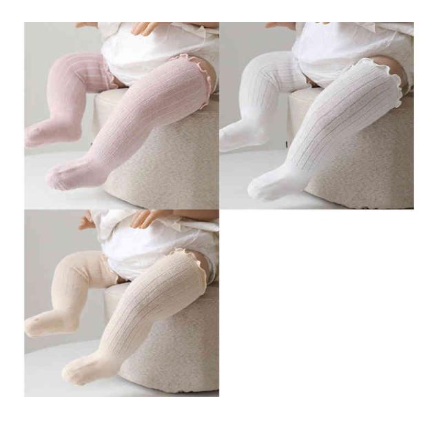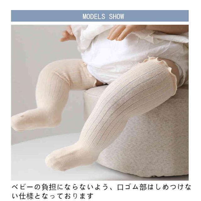 | 履き口のフリルが可愛いベビー用ハイソックス★ ベビーの負担にならないよう、口ゴム部はしめつけない仕様となっております。 ハイソックスなので、ハイハイをはじめたベビーにも安心です。 シンプルな無地のソックスなのでどんな服にも合わせやすく、男女問わず使用できます。 | |