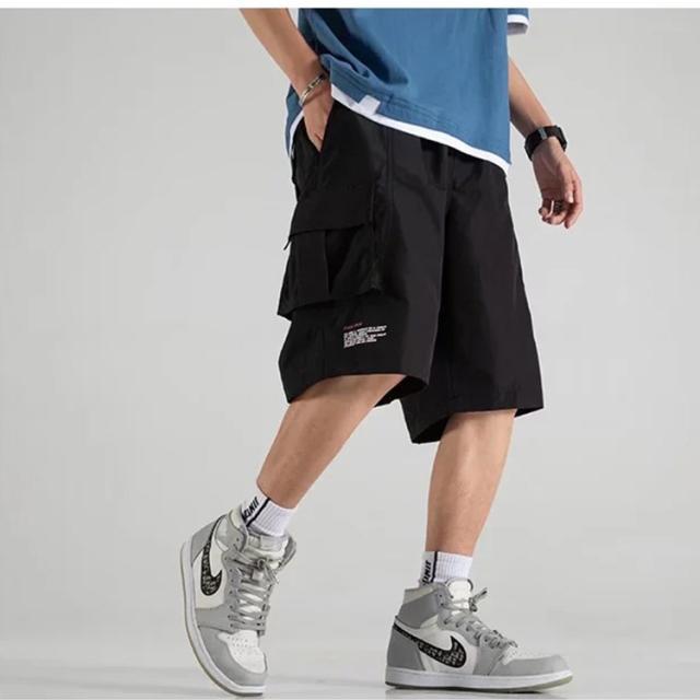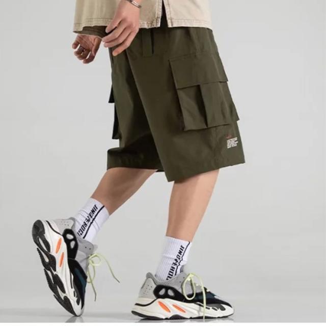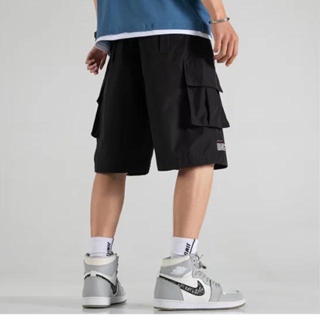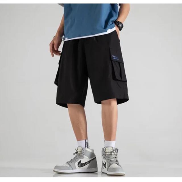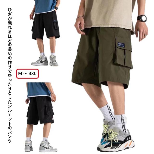 ハーフパンツ メンズ ひざ下 カーゴパンツ スポーツ 太め ゆったり 夏 クロップドパンツ 5分丈 ショートパンツ ブラック カーキ 送料無料