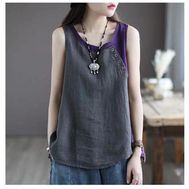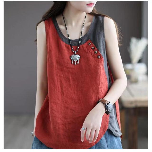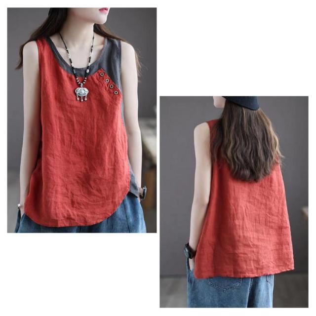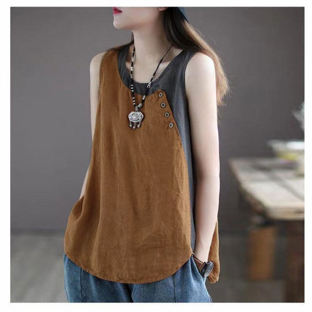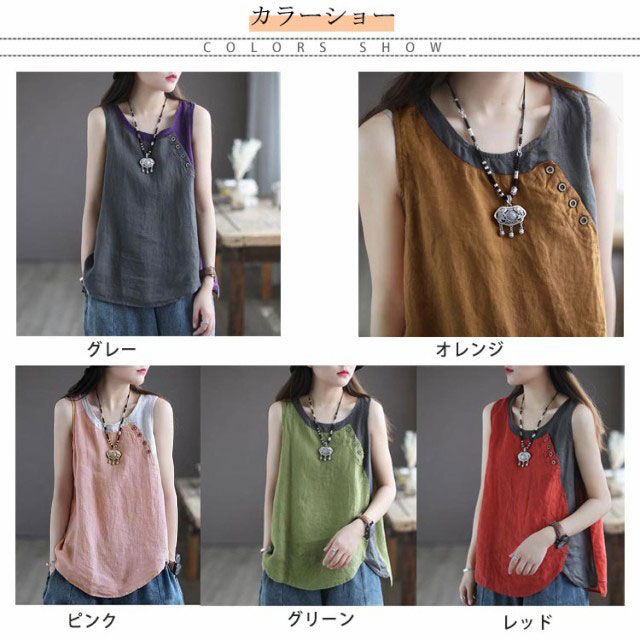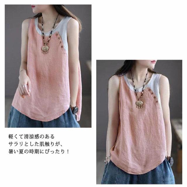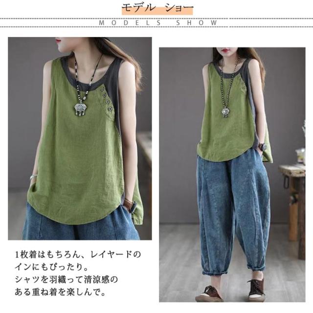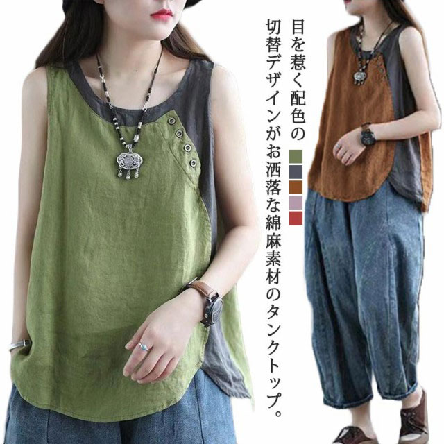 リネン タンクトップ レディース 綿麻 麻混 リネン混 タンクトップ 女性 ノースリーブ トップス tシャツ 配色 切替 ゆったり 無地 涼しげ 麻 リネン 重ね着 レイヤード 大きいサイズ 体型カバー 部屋着 ナチュラル 大人 おしゃれ シンプル 春 夏 送料無料 30代 40代 50代