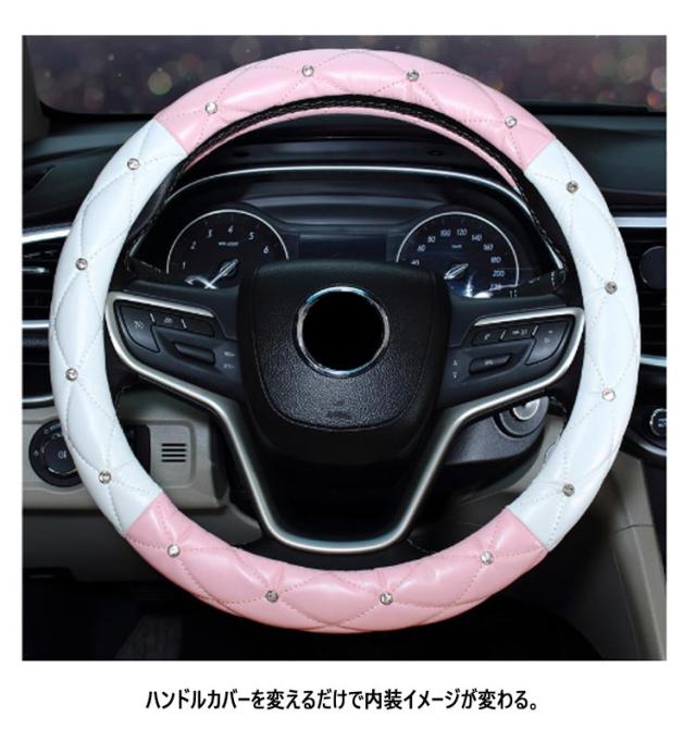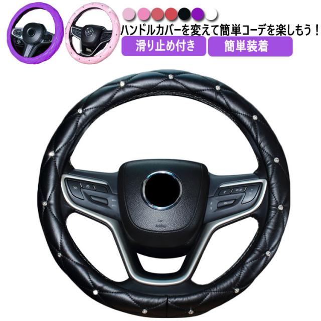 送料無料 ハンドルカバー 自動車用 軽自動車 キラキラ 撥水 おしゃれ ステアリングカバー 滑り止め付き 握りやすい 簡単装着 乗用車 内装用品 カー用品 車 可愛い 38cm ストーン付き 普通乗用車用 コンパクトカー 上品 長持ち 父の日