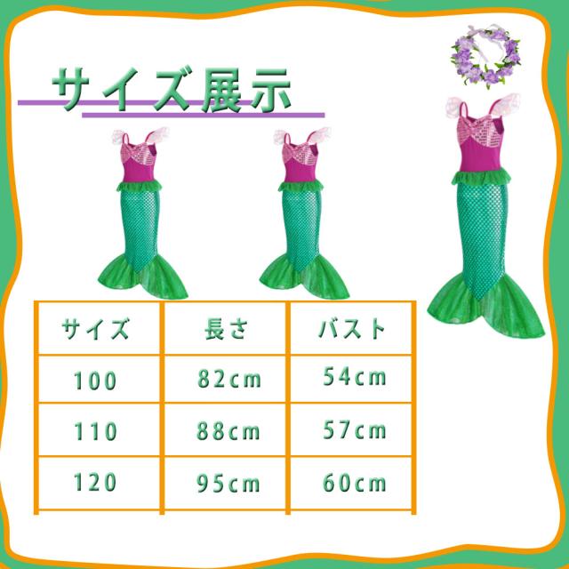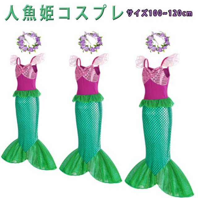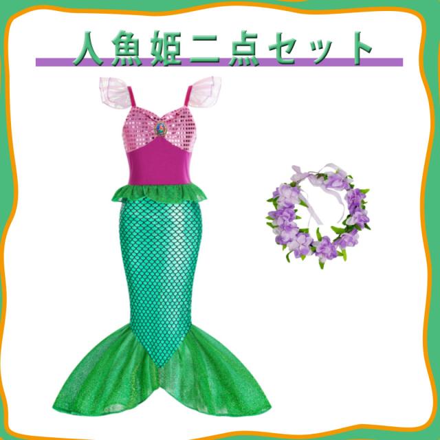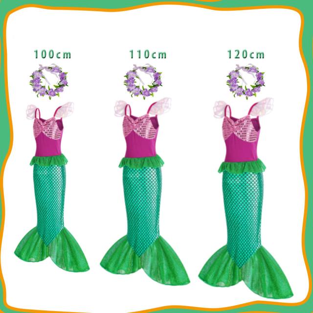 ハロウィンコスプレ 人魚姫 コスチューム リトルマーメイド 花冠付き かんむり カチューシャ プリンセスドレス コスチューム ドレス キッズ ハロウィン 仮装 発表会 演出 コスプレ ワンピース