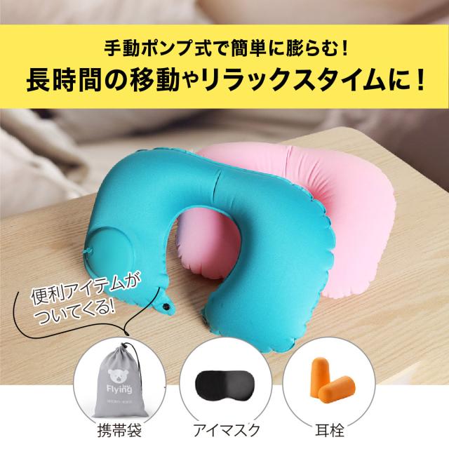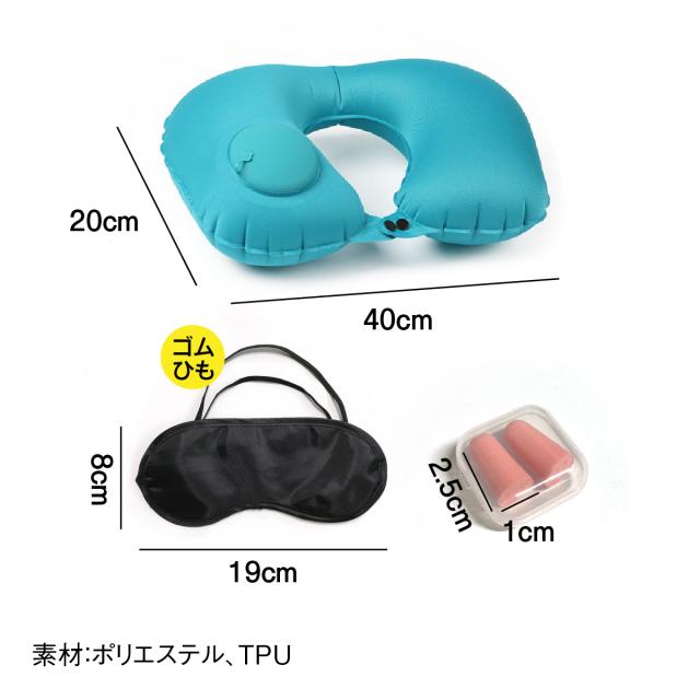 ネックピロー エアポンプ 耳栓 アイマスク 旅行 携帯 飛行機 旅行セット かわいい pillow-02