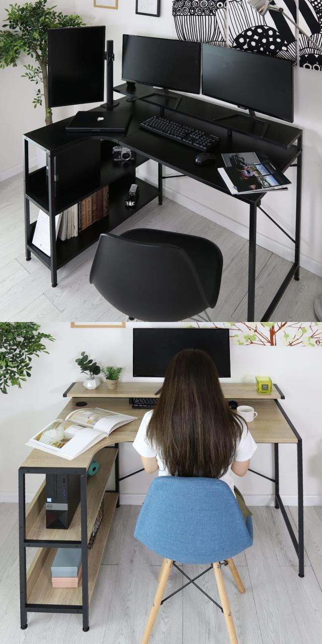 コーナーなどの限られたスペースを最大限に活用できるため、省スペースで効率的な作業空間をつくることができます。2つ作業エリアで複数のタスクを同時に行う事も可能です。