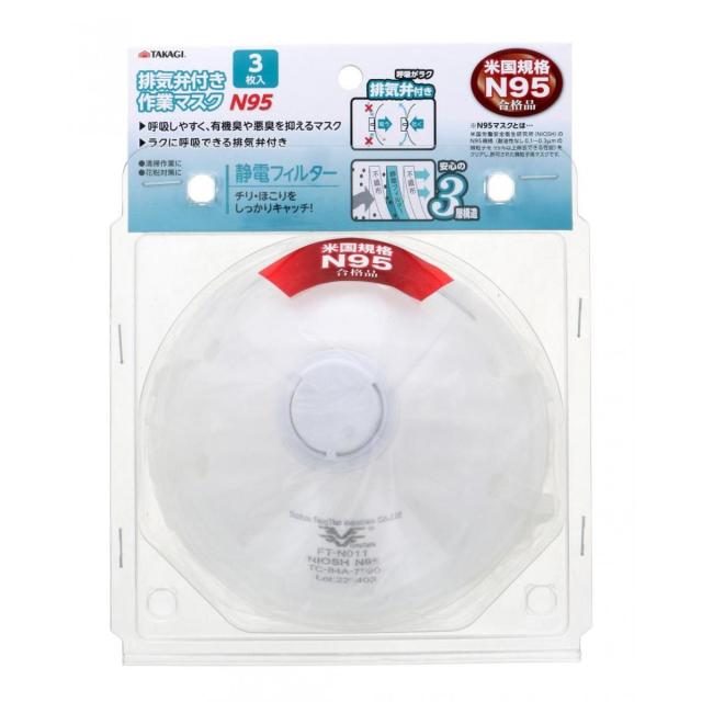 高儀 排気弁付作業マスク N95 3枚入 清掃作業 花粉対策 不織布 静電気フィルター 3層構造