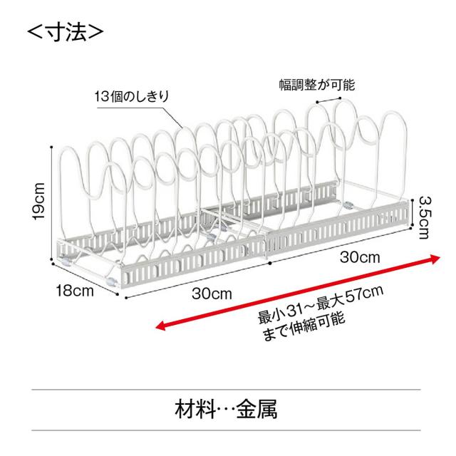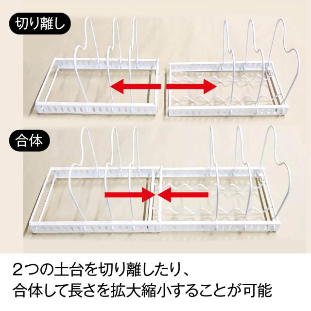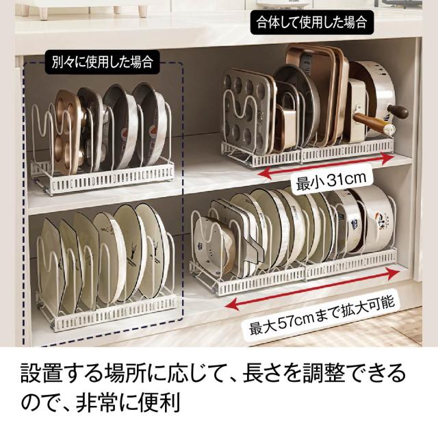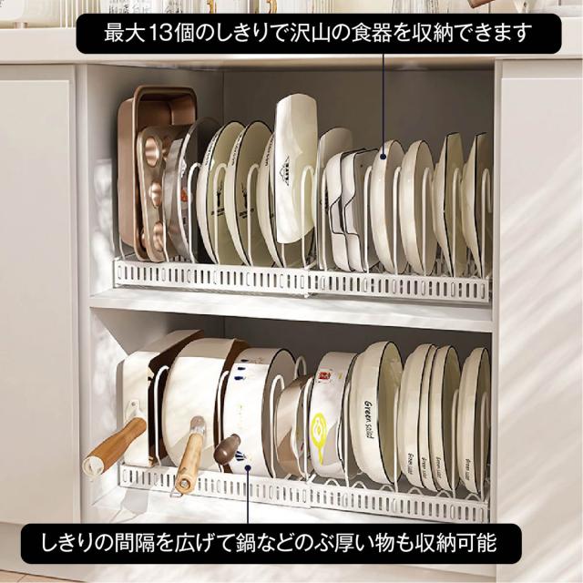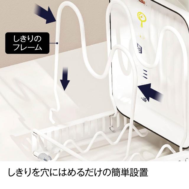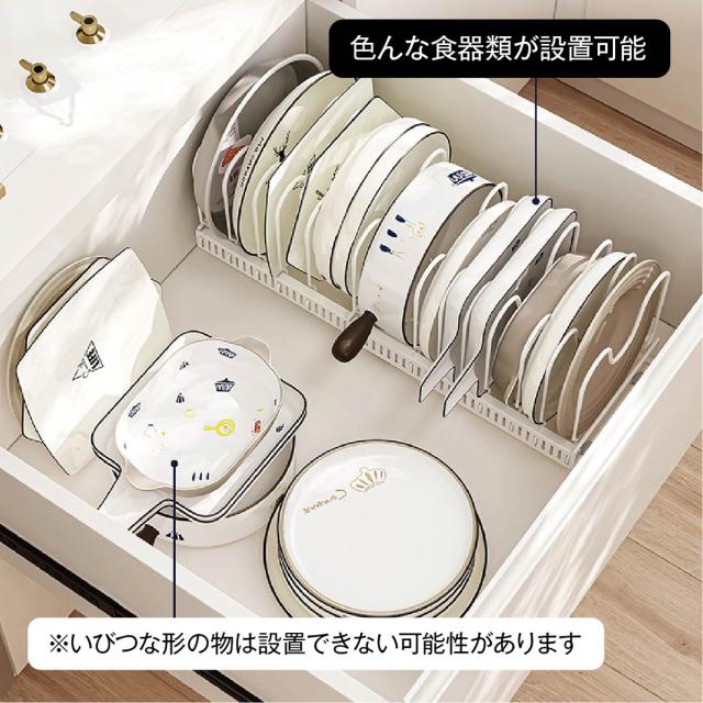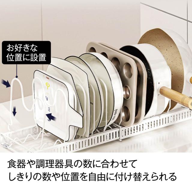 食器や調理器具の数に合わせて、しきりの数や位置を自由に付け替えられる。