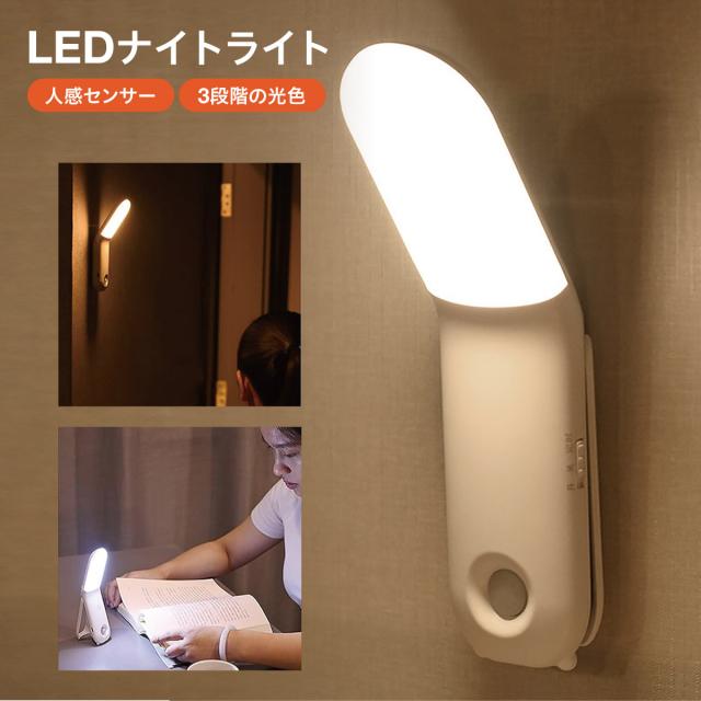 LEDライト 人感センサー ライト ナイトライト 照明 充電式 センサーライト 3段階光色 おしゃれ