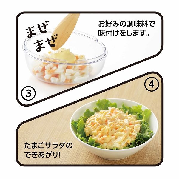 付属の容器の中で味付けするだけで、たまごサラダがあっという間に完成します。