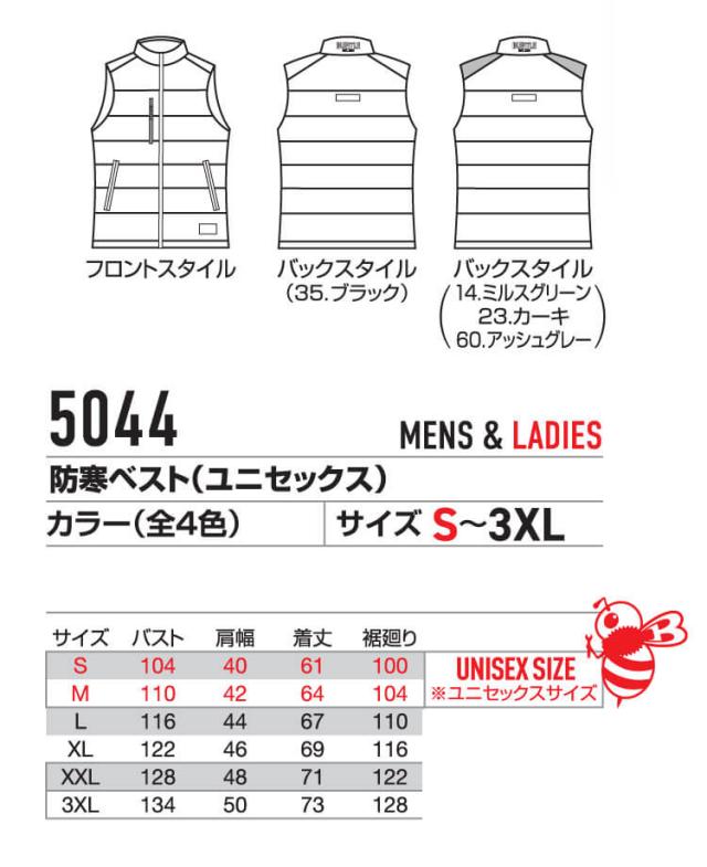 [即日発送]防寒着 バートル BURTLE サーモクラフト 防寒ベスト(単品) 5044 THERMOCRAFT サイズS〜XL