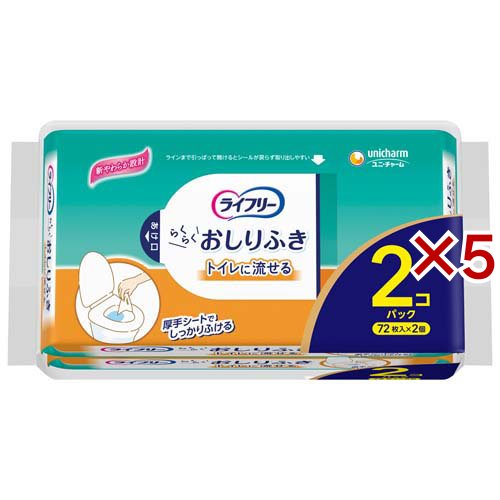 ライフリー らくらくおしりふき トイレに流せる 介護用ウェットティッシュ(2個入×5セット(1個72枚))[清拭タオル]