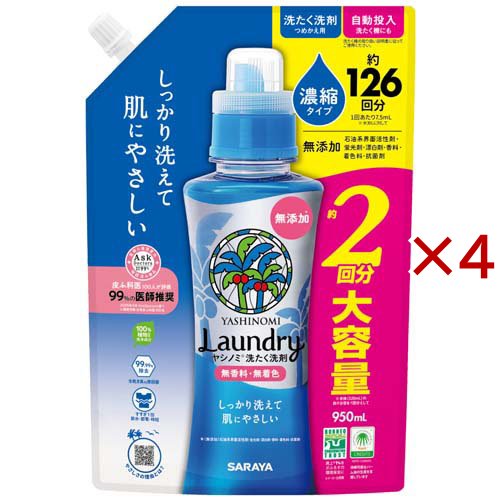 サラヤ ヤシノミ洗たく洗剤濃縮タイプ 詰替(950ml×4セット)[つめかえ用洗濯洗剤(液体)]