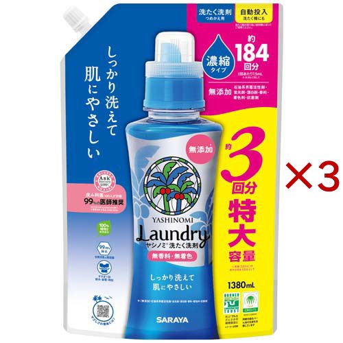 サラヤ ヤシノミ洗たく洗剤濃縮タイプ 詰替(1380ml×3セット)[つめかえ用洗濯洗剤(液体)]