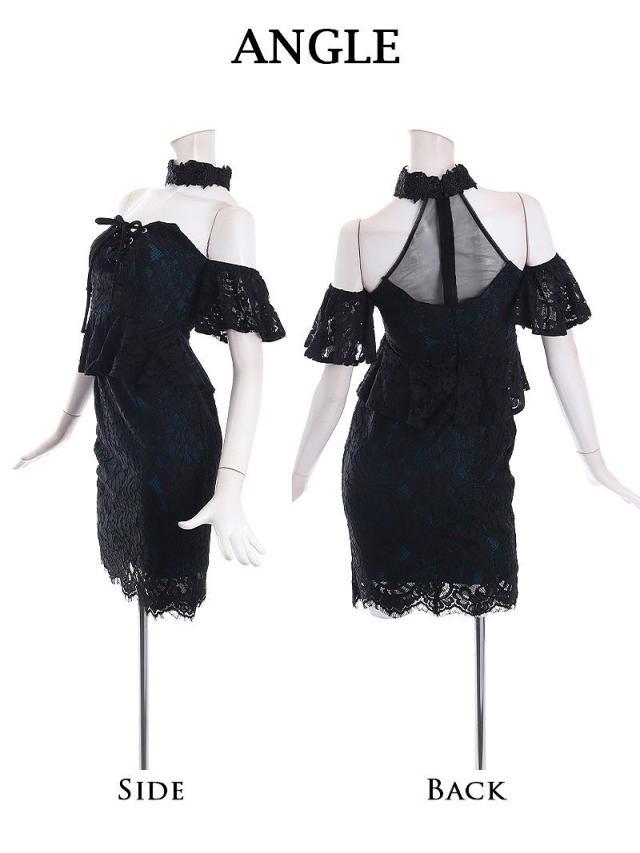 ☆総レースにオフショルデザインがsexyをONしながら袖つきフリルとペプラムが可愛さを兼ね備えるランジェリー風キャバドレス。