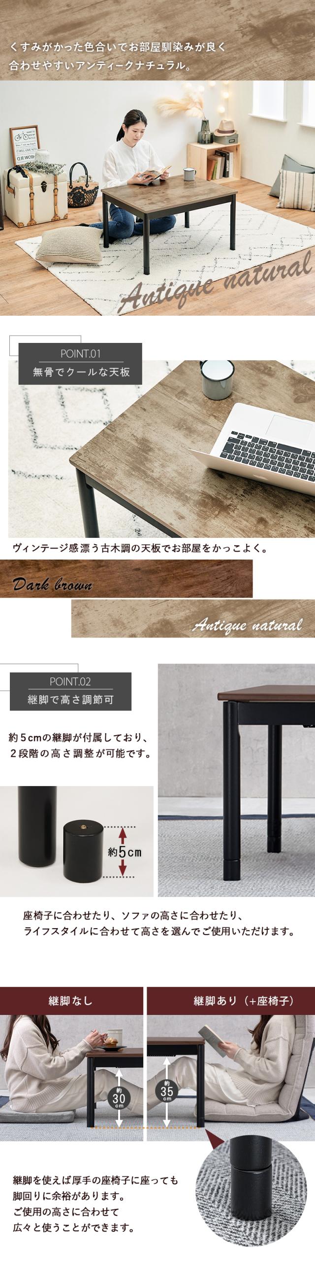 こたつ天板:プリント化粧繊維板、脚部:ラバーウッド