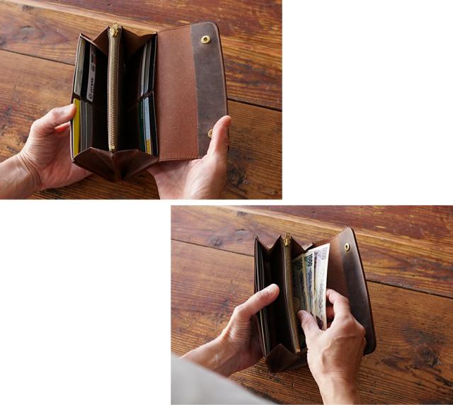 スーツスタイルの時は きっちりとした上品な印象に。ヌバックレザーのスニーカーをあわせたりして カジュアルなコーディネートの時なら品よいながらに ちょっぴりラフなイメージになる。シーンのON/OFFに左右されずに しっかりとした存在感を放つ長財布です。