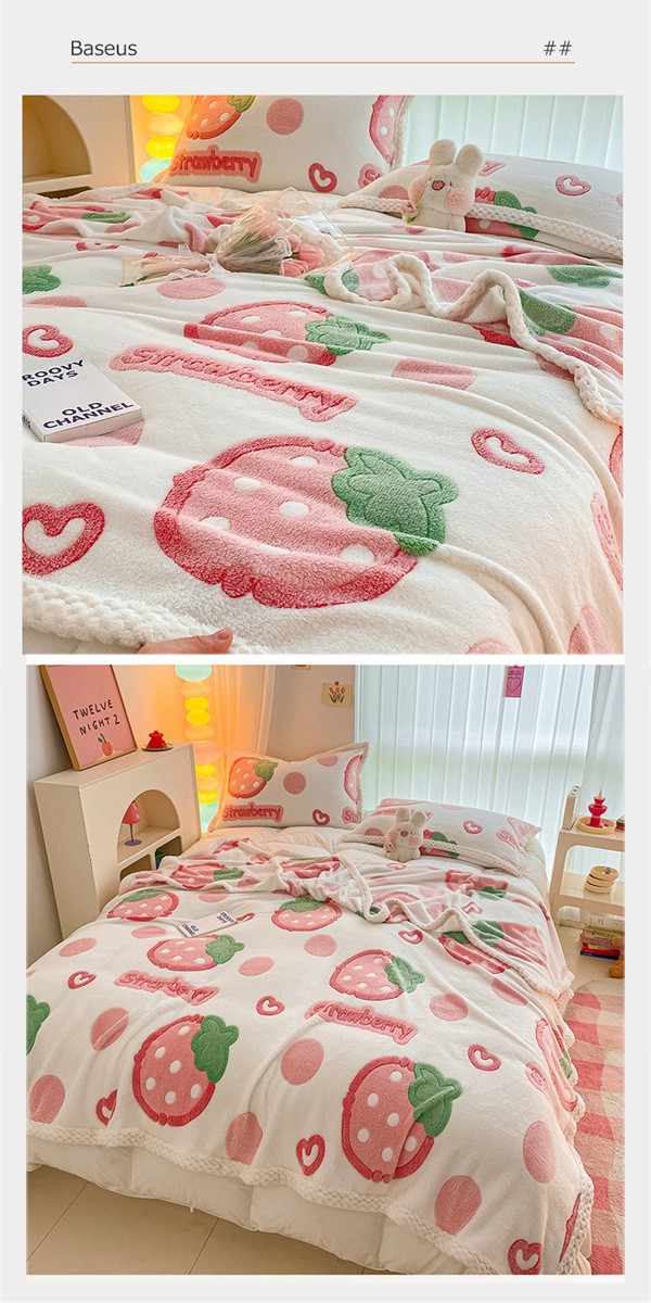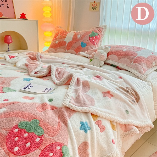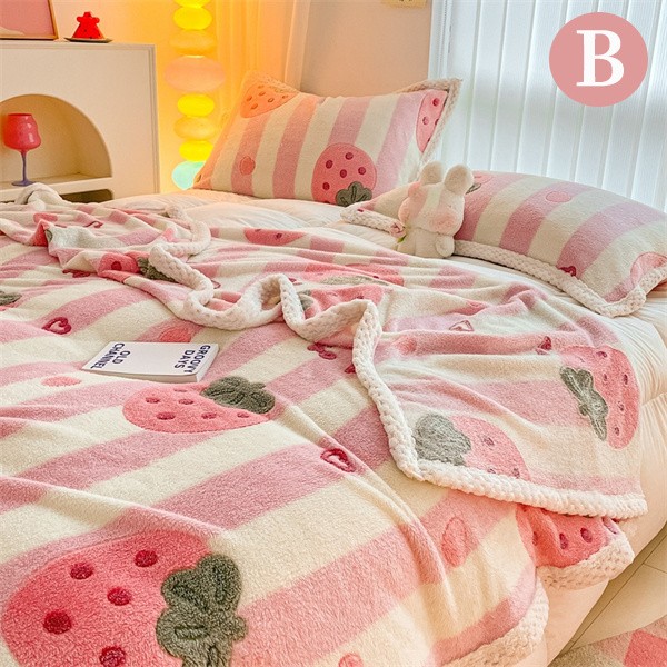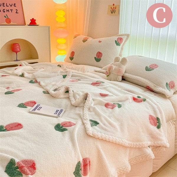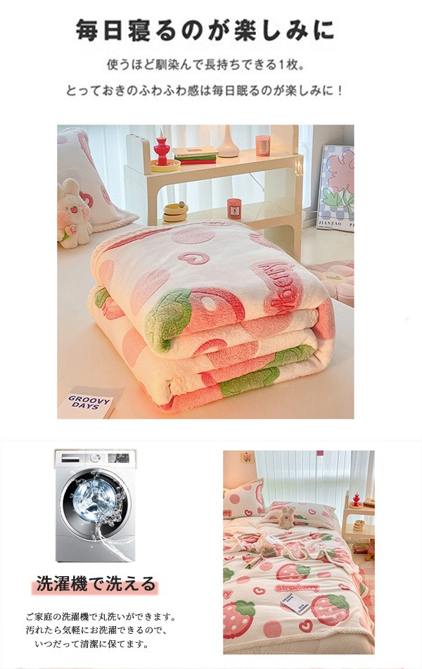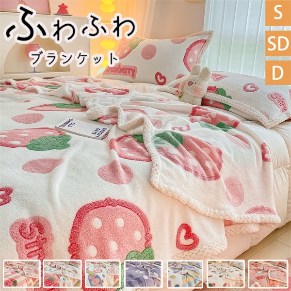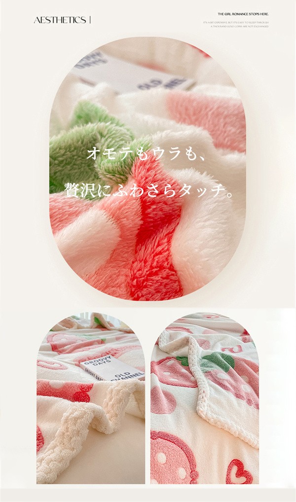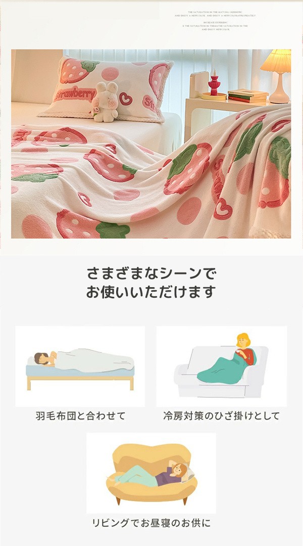 ブランケット イチゴ柄 苺柄 おしゃれ 大判 防寒 冷え対策 かわいい フランネル 毛布 ふわふわ もこもこ お昼寝 ベッド ソファー ひざ掛け インテリア マイクロファイバー 洗える 暖かい 寝具 マルチカバー 掛け毛布 シングル ダブル