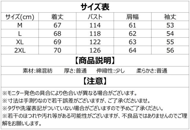 ▼サイズ:M/L/XL/2XL(単位:CM)