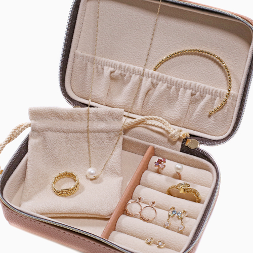 持ち運び便利なコンパクトサイズのジュエリーケース。