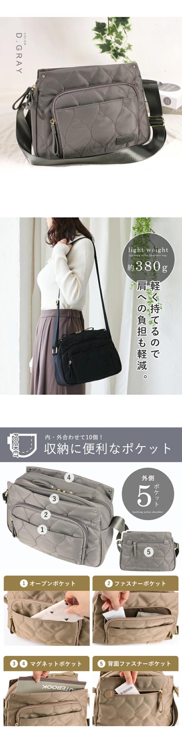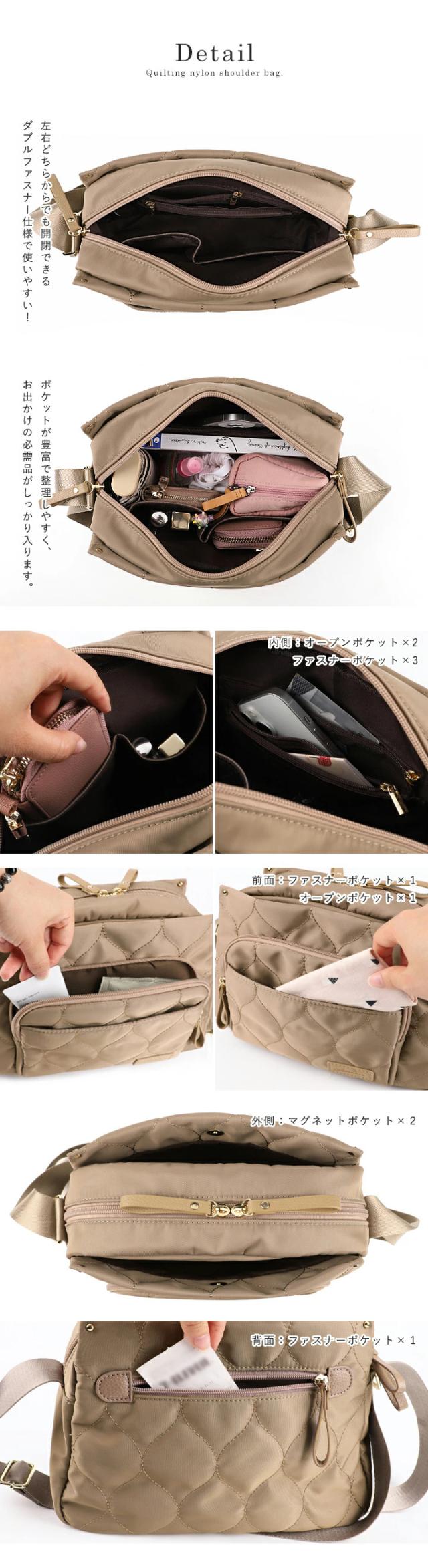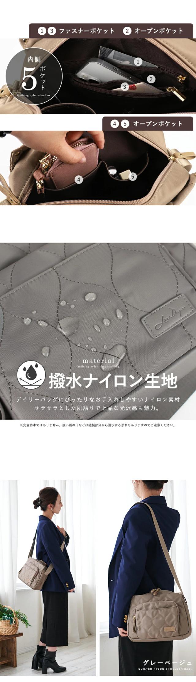 キルティング ショルダーバッグ レディース 斜めがけ 大容量 軽量 10ポケット バッグ 撥水 ナイロン ショルダー おしゃれ LIZDAYS リズデイズ 大人 マザーズバッグ 肩掛け 多収納 ダブルファスナー マグネット シンプル お出かけ【lz-70507】