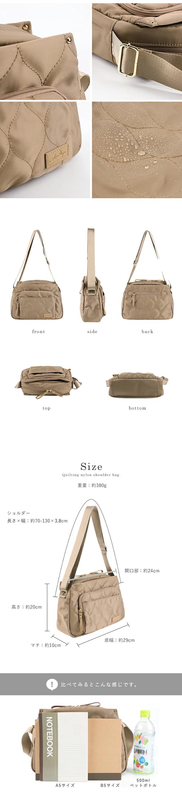 撥水キルティングのナイロンショルダー