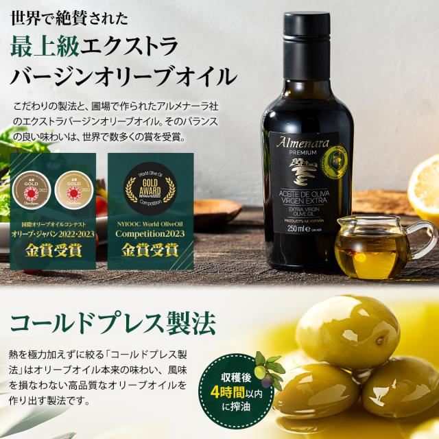 [ 2年連続 金賞受賞 ] エキストラバージン オリーブオイル コールドプレス製法 スペイン産 オリーブ100% アルメナーラ エクストラバージン 250ml 2個セット