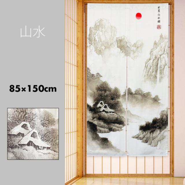 のれん 暖簾 おしゃれ カーテン 間仕切り 仕切りカーテン 目隠し 和風 和柄 和モダン 和風モダン 和風暖簾 日本 日本画 山水画 水墨画 絵画 枯山水 自然 風景 山水 85×150cm