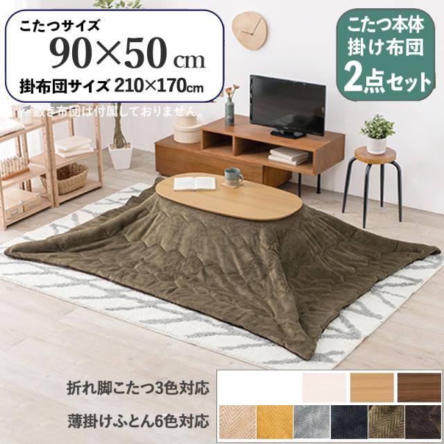 【2点セット】こたつ+薄掛けこたつふとんセット 無地柄 カーキ 全6色 楕円形 ナチュラル テーブル 折れ脚 折りたたみ コンパクト ちいさめ 木目調 石英管ヒーター CAMINAPIQUE