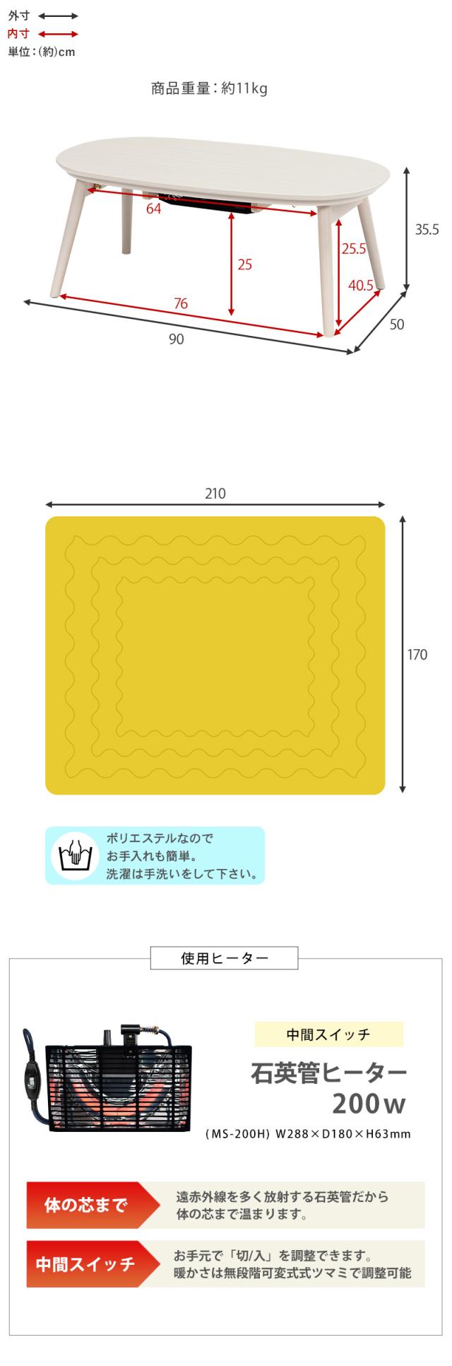 こたつ:(約)幅90×奥行50×高さ35.5cm
