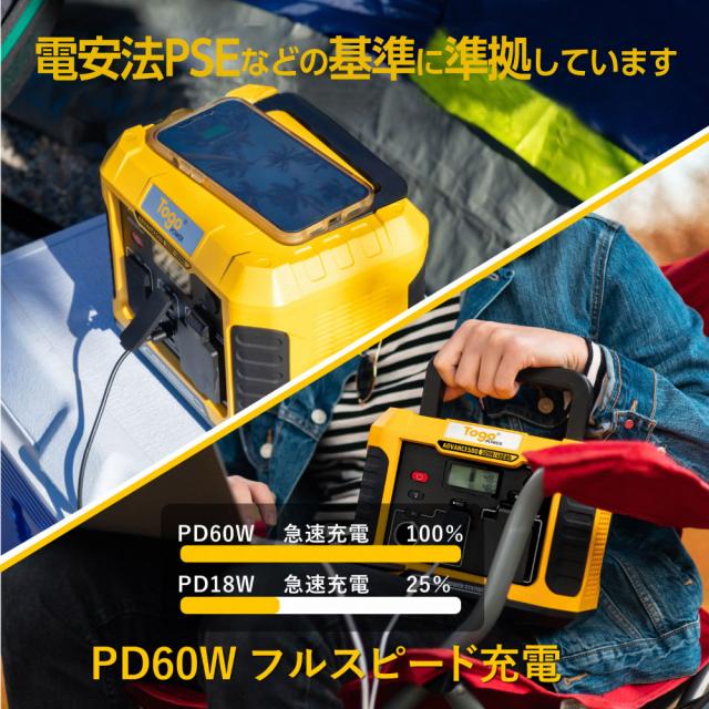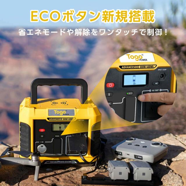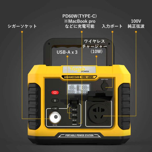 【正規代理店】ポータブル電源 TogoPower ADVANCE500 500W 400Wh 108100mAh 大容量 バッテリー アウトドア キャンプ 防災 PSE認証済