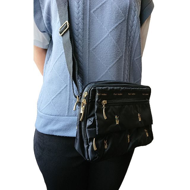 レディースショルダーバッグ 旅行 街歩き 軽量 多機能ポケット 「可愛いネコ柄刺繍ショルダーバッグ」 (女性用 カバン 鞄 かばん)