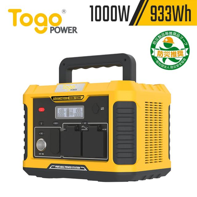 【正規代理店】ポータブル電源 TogoPower ADVANCE1000 1000W 933Wh 252100mAh 大容量 バッテリー アウトドア キャンプ 防災 PSE認証済