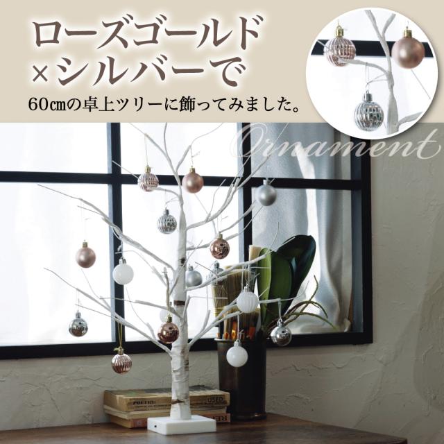 4cmの小さめなオーナメントはシンプルで飽きのこないデザイン。 ボールのオーナメントは光が反射しやすい表面なので、ツリーのライトや部屋の照明によって美しく輝きます。