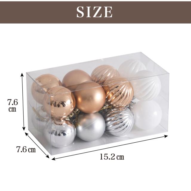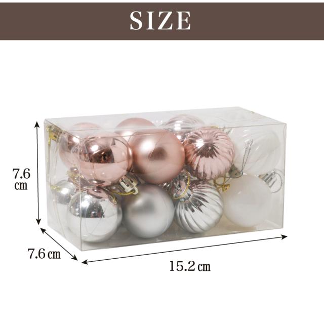 オーナメントは1セット16個入りで、小さめのクリスマスツリーや卓上ツリーを飾り付けるのにぴったりです。