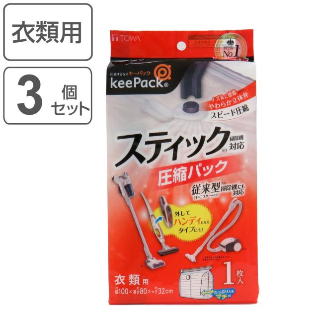 圧縮袋 衣類圧縮パック 1枚入×3個セット スティック掃除機対応 ( 衣類 洋服 収納 収納袋 スティック掃除機 キャニスター掃除機 マチ付き 衣類収納 大容量 スティック型 省スペース スピード圧縮 衣替え コードレス 掃除機 )