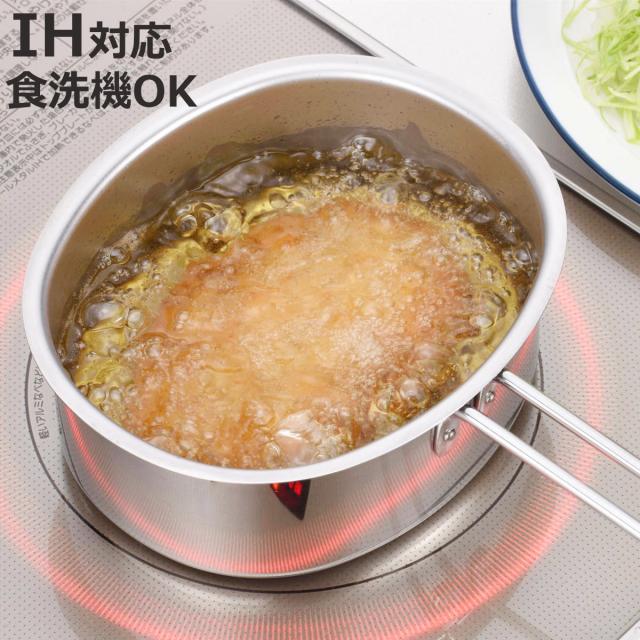 片手鍋 IH対応 食洗機で洗える 楕円鍋 日本製 ( ガス火対応 楕円型鍋 揚げ鍋 小鍋 片手なべ オールステンレス 楕円形 コンパクト 天ぷら鍋 軽量 軽い ステンレス製 鍋 なべ 食洗機対応 )