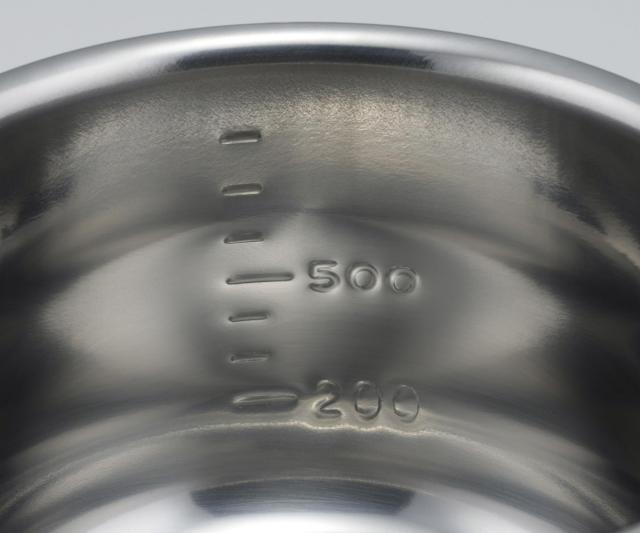 内側には、200〜800mlまでの目安目盛り付きなので、お菓子作りにも便利です。