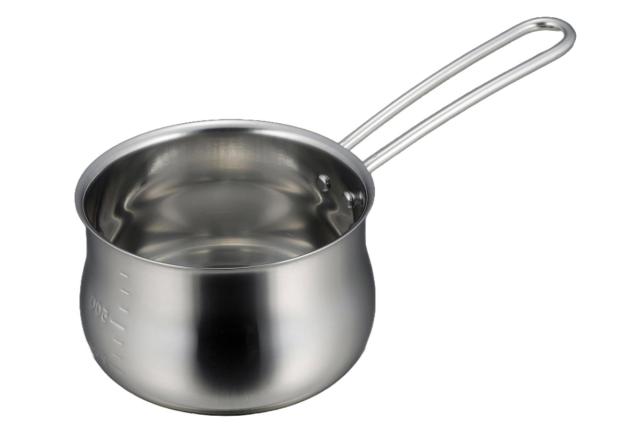 ミルクパン 12cm 食洗機で洗えてきれいに注げるミルクパン 日本製 ( ガス火対応 片手鍋 ソースパン 小鍋 片手なべ オールステンレス 12センチ 目盛り付き 小ぶり 軽量 軽い ステンレス製 鍋 なべ 食洗機対応 )