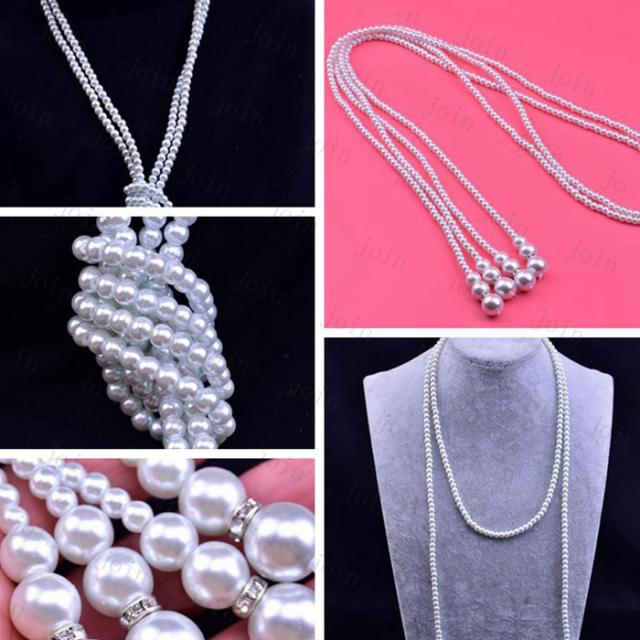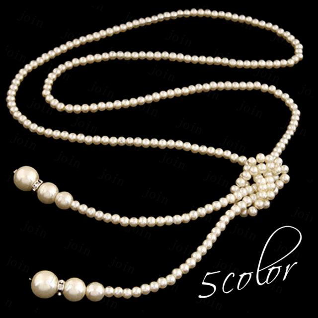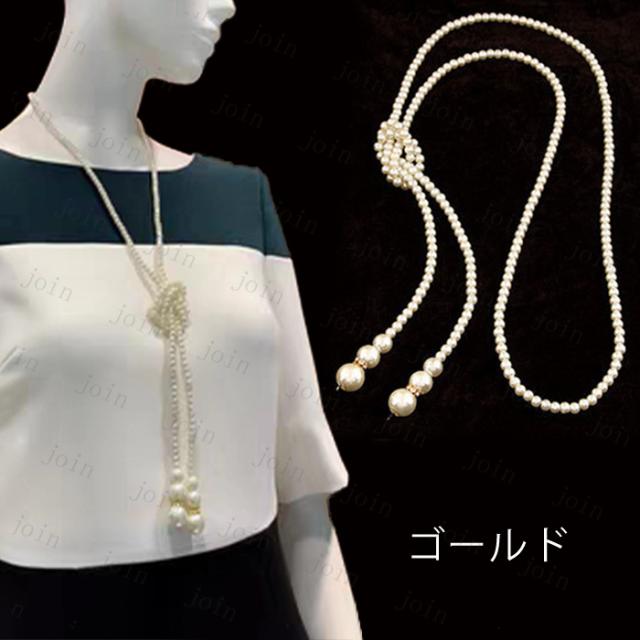 2連パール (#A6) ロングネックレス レディース 5color フェイクパール アクセサリー 結婚式 フォーマル パーティー