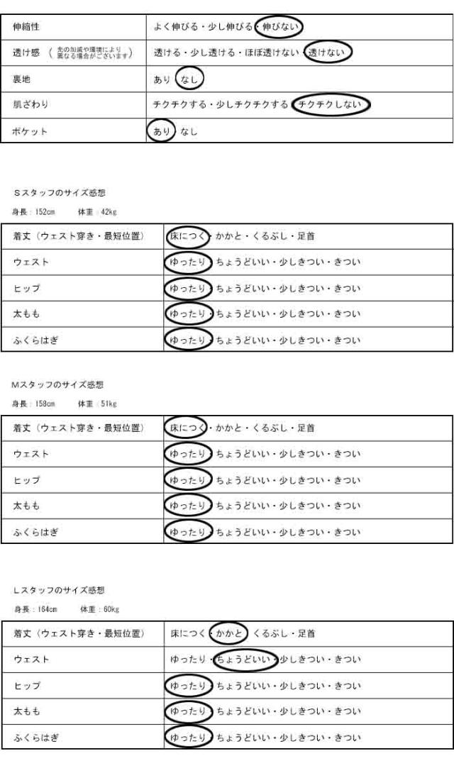| ウエスト(後ろゴム伸縮あり) | 70〜102 |
