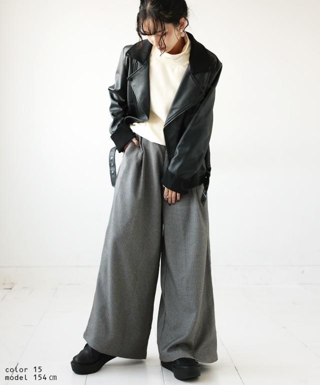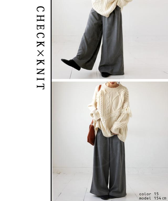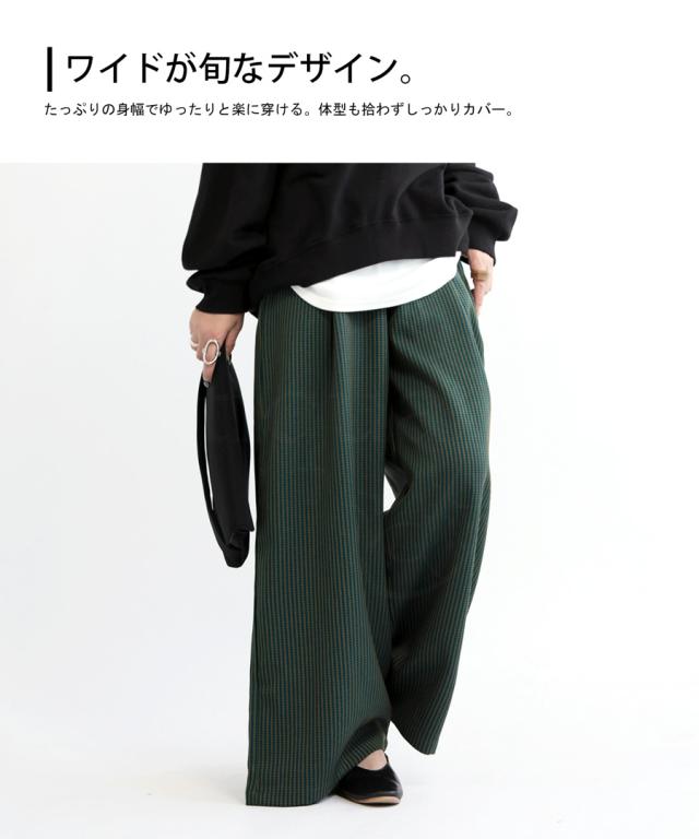 py-00713 チェック柄 柄 柄ボトム セットアップ 長ズボン ワイド ゆったり シンプル ロングパンツ 上品 きれいめ タックパンツ 総柄 チェック 体型カバー 細見え 着痩せ 大きめ