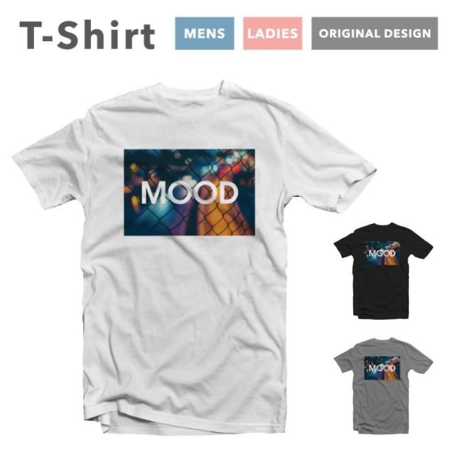 Tシャツ レディース 半袖 おしゃれ プリント ブラック ホワイト グレー MOOD 街 夜 カラフル ネオン 海外 かわいい