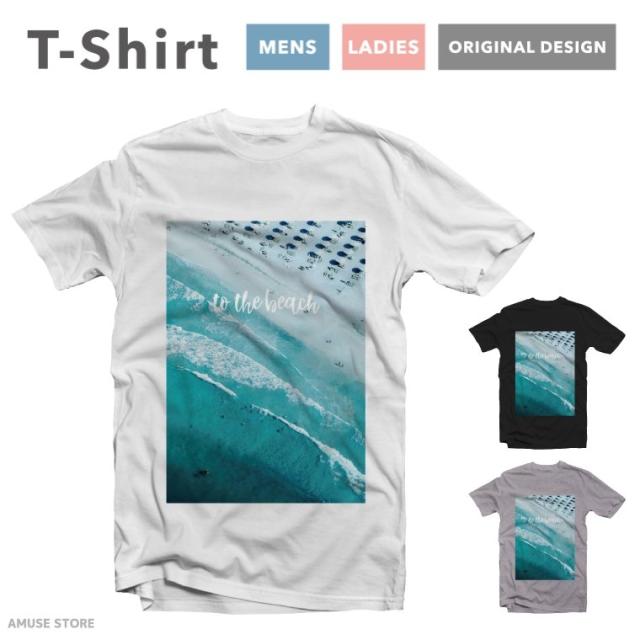 Tシャツ レディース 半袖 おしゃれ プリント ブラック ホワイト グレー TO THE BEACH 海 sea 砂浜 summer 夏 HAWAII
